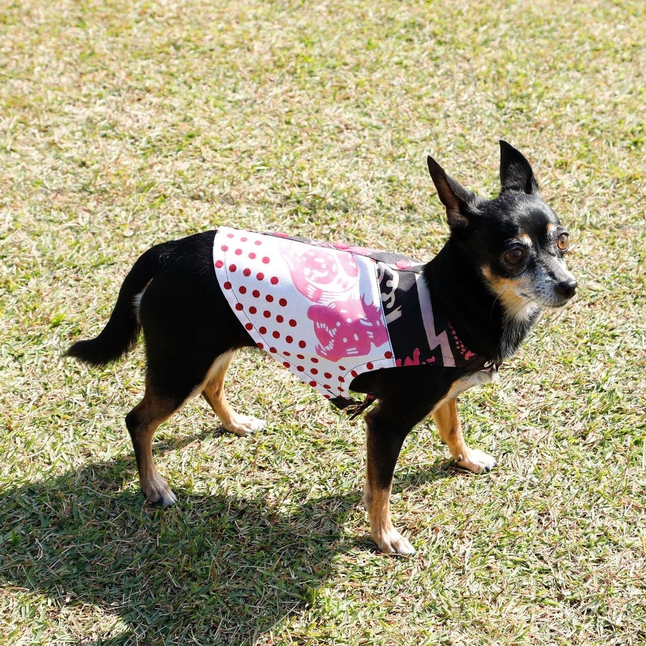 魚河岸シャツのオリジナリティーあふれる生地を使って和風ドッグTシャツを製作しました。ホックで止めるようになっていますので、わんちゃんの毛を挟み込むことがありません。柄も豊富に揃っていますので、お好きな柄が選べると思います。
