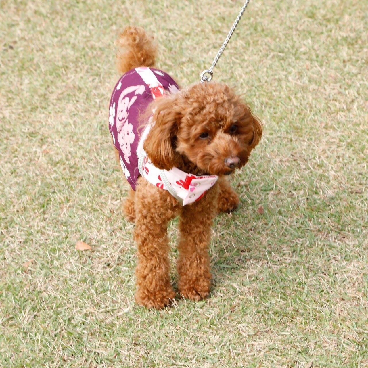 魚河岸シャツのオリジナリティーあふれる生地を使って和風ドッグTシャツを製作しました。ホックで止めるようになっていますので、わんちゃんの毛を挟み込むことがありません。柄も豊富に揃っていますので、お好きな柄が選べると思います。