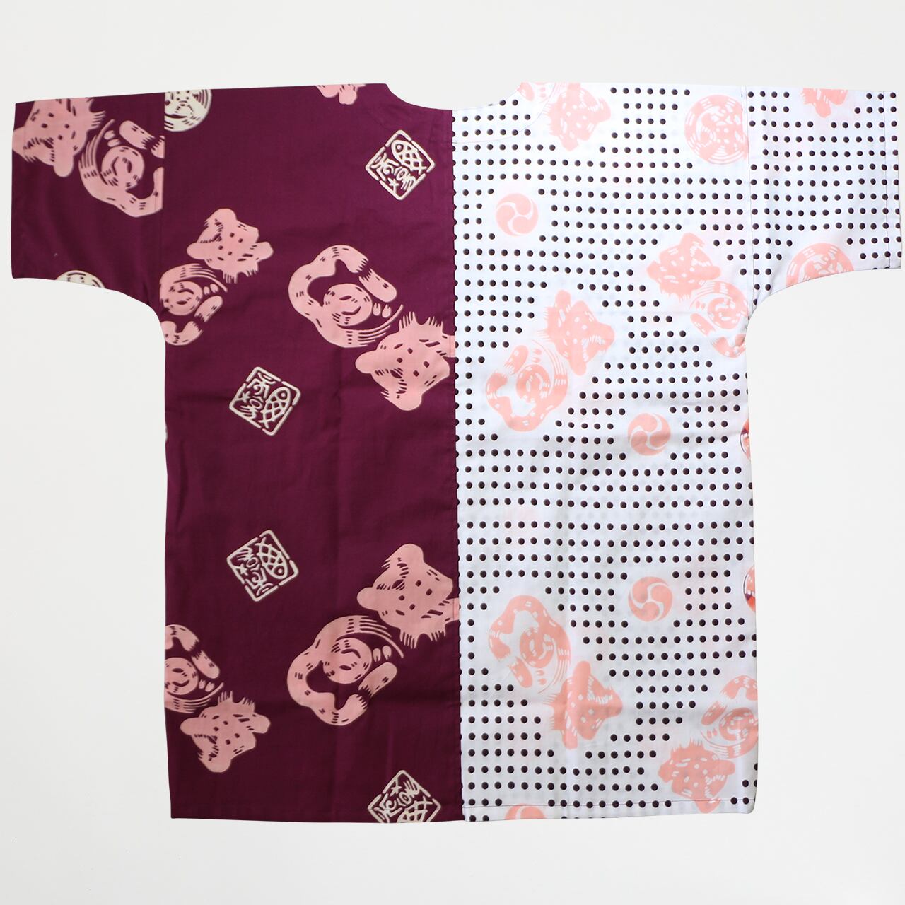 魚河岸シャツ【品番40028-M】【市場紫クレヤピンク+ 豆絞り紫とピンク】
